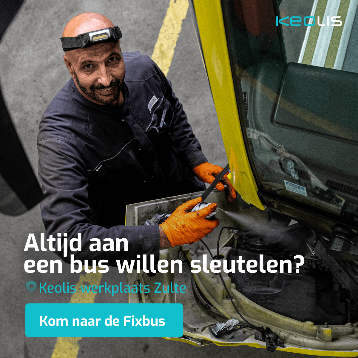 Doe jij niets liever dan experimenteren met nieuwe technieken? Bij de Fixbus roadshow van Keolis kan jij sleutelen aan iets wat niet in je eigen garage past: een bus. Ontdek hoe bussen werken en hoe onze teams ervoor zorgen dat ze blijven werken. En wie weet ga jij wel als nieuwe collega van ons #TeamMecanicien naar huis!